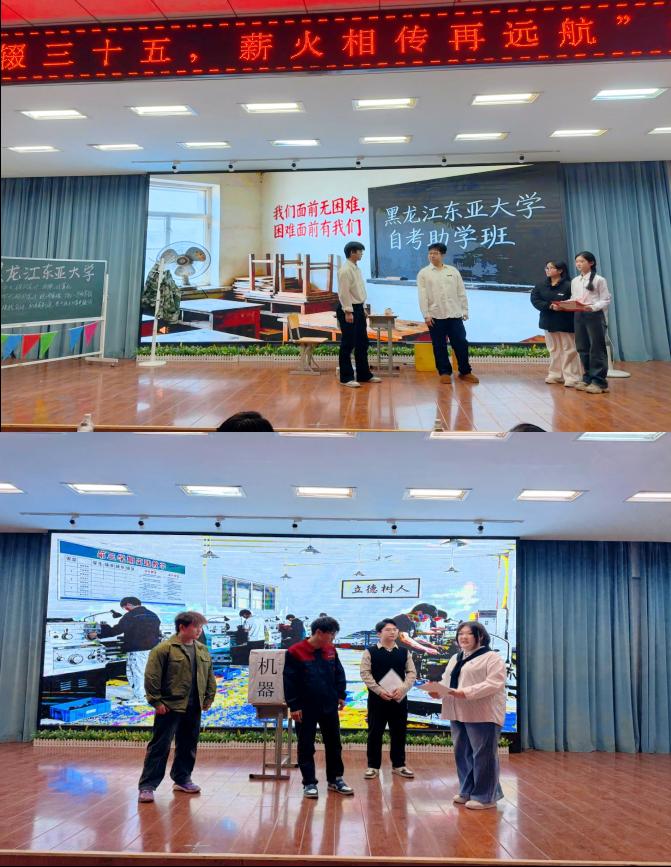 为迎接2026年学校建校35周年,深入挖掘校史文化中的精神内核,传承校园文化基因,12月18日,马克思主义学院以“三十五年弦歌不辍,校国同心共谱华章”为主题,在二号教学区2508室开展舞台剧展演活动。此次活动以艺术演绎为载体,再现学校与国家同频共振的发展历程,引导学生在实践中感悟家国情怀,强化责任担当,为校庆35周年营造浓厚氛围。