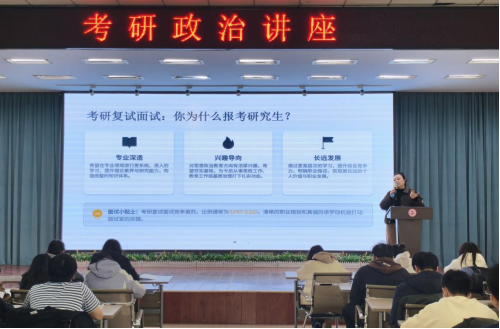 为深入落实立德树人根本任务,将思政教育与学生职业发展深度融合,精准对接大三学子升学就业核心需求,3月23日至27日,马克思主义学院包鞠萌、王蕊、梁佳梅三位教师联袂开展大学生职业发展规划系列讲座,以考研、考公、考编及央国企报考指导为核心,同步推介学院针对考研、行测、申论三大微专业,为学子搭建“规划指导+专业赋能”的双轨助力平台,引导广大学子明晰发展路径、夯实备考基础。